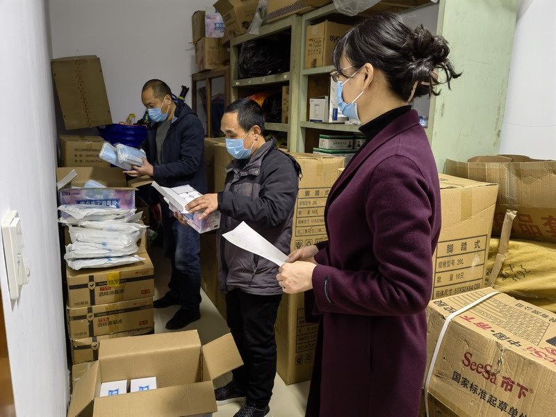 共计发放口罩9000个、84消毒片50瓶、防护服20套、体温枪30支、喷雾器15个……