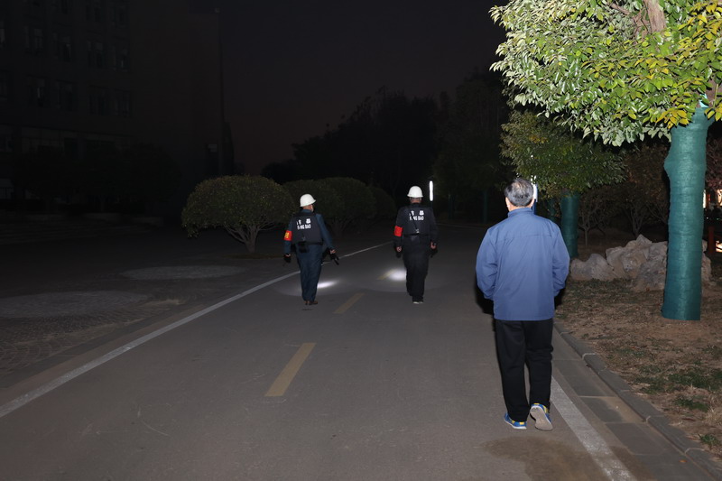 深夜的校园,一片宁静祥和,闪烁的星辰注视着仍在执行防疫任务的工作人员,步履匆匆,眼神坚毅……