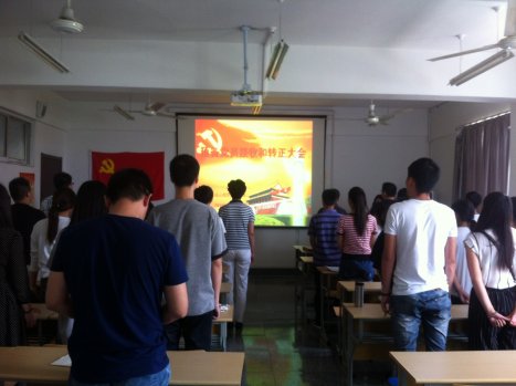2015年6月10日下午电信学院党支部在多媒体512召开预备党员接收和转正大会,学院全体党员和入党积极分子共40人参加会议,党支部组织委员马雷老师主持会议。