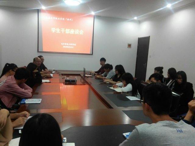 电信学院召开学生干部座谈会 时间:2016-10-10 18:26 作者:电子信息工程学院 来源:电子信息工程学院 电信学院召开学生干部座谈会为进一步推进“教学质量提升年”活动,,加强学生干部队伍管理,扎实推进优良学风和班风建设,9月27日下午,电信学院在多媒体二楼会议室召开全体学生干部会议,学院高院长、鲍书记以及学生会、团总支和各班学生干部代表参加了会议。鲍书记就新学期学生干部队伍建设以及学生管理工作作了进一步说明,提出了新学期学生干部工作计划,传达了球友会(中国)官方网站学生工作精神和学院学生工作安排,强调学生干部队伍学风和班风建设中的重要性,并要求全体学生干部严格要求自己,以身作则,起模范带头作用。学生会主席、团总支书记和部分学生干部结合自身工作在会上作了发言,并对学生干部存在的问题以及各班学生学习和管理工作提出了意见和建议。高院长针对优良学风和班风建设以及本学期各专业教学工作计划安排和学生干部在班级教学管理所起到的作用等方面给同学作讲解,希望学生干部在新学期要充分发挥模范带头作用、核心骨干作用、桥梁纽带作用,共同打造电信学院的优良学风和班风。本次会议的召开,旨在加强学院优良学风和班风建设,为新学期的学生工作打好基础。使每个学生干部找到差距,明确目标,进一步增强工作责任心和使命感。