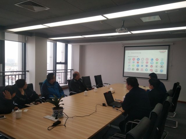 首先,由Oracle甲骨文公司潘总介绍了公司的发展历程和主要业务,一起观看了甲骨文公司发展战略宣传片,并就合作思路、方向和具体合作模式进行了说明。丁总分别就云教育、学生专业培养与实习实训以及技能认证等问题进行详细介绍。