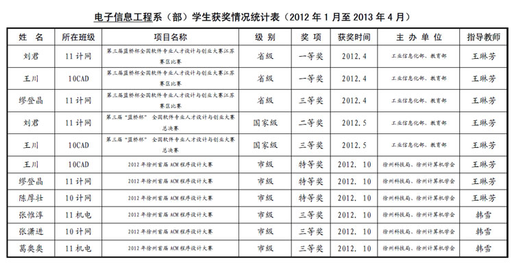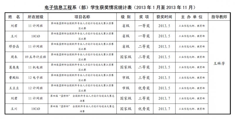 电子信息工程学院2014年度大学生创新实践性活动 优秀班集体、优秀学生和优秀指导教师获奖名单