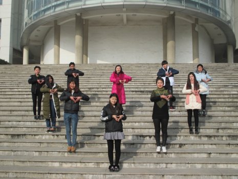 )班,即将离开母校,图为同学们在校园留影,她们摆出造型“感恩的心”,以此表达对母校的感激之情!