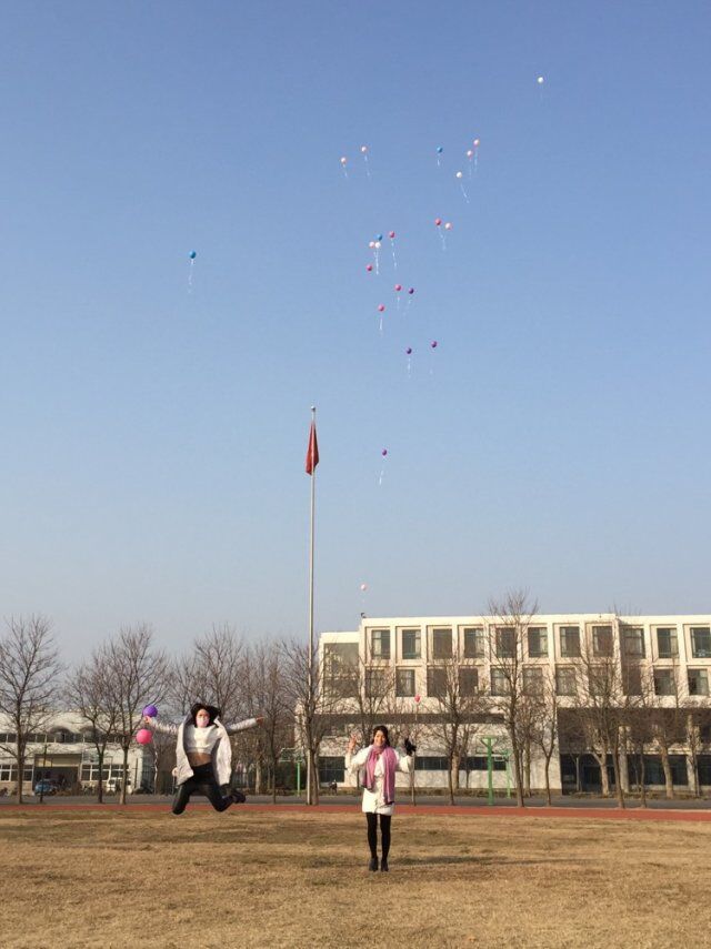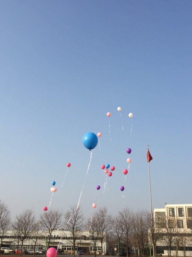 同学们把心愿写在气球上,放飞梦想。