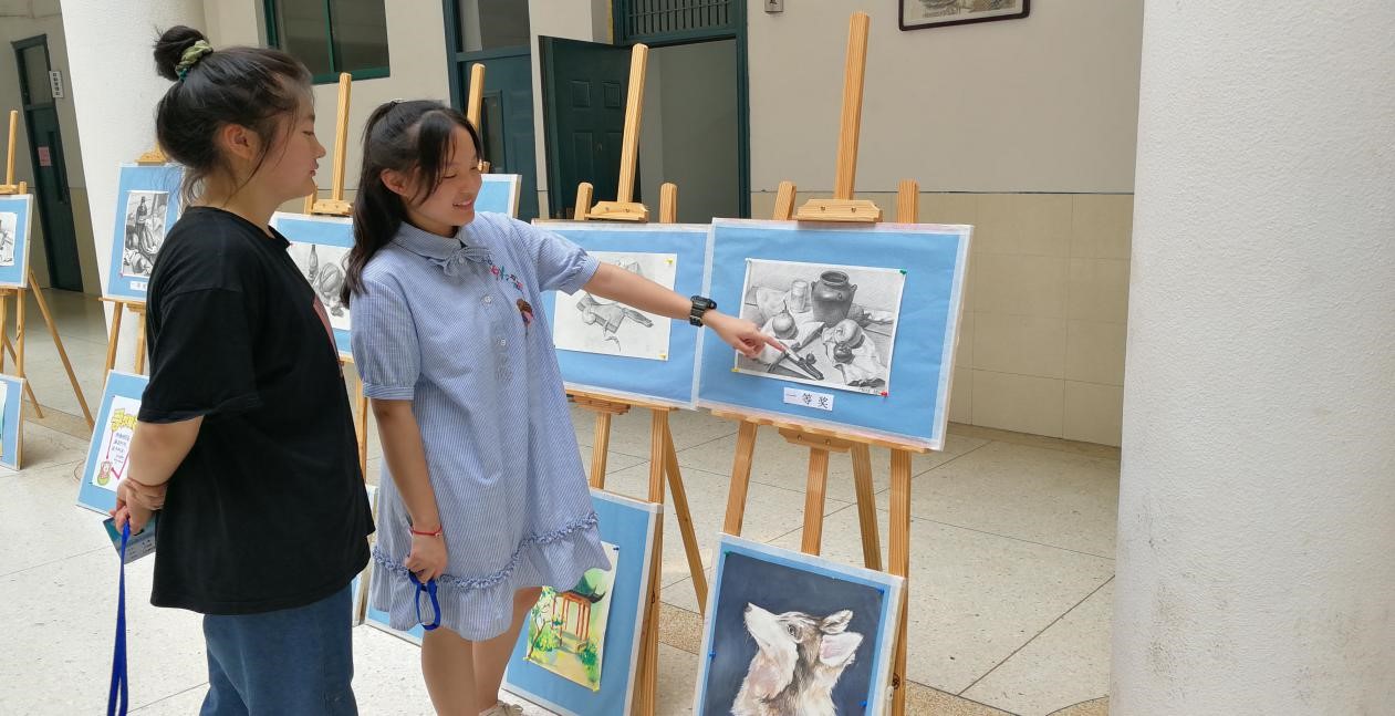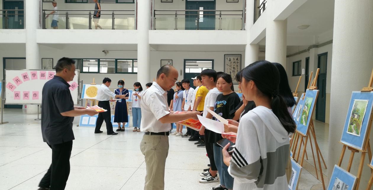 7月7日,公教部艺术专业学生作品书画展完美呈现在大家面前。 此次展出中有近百幅书画作品在教学楼一楼东厅布展。这是公教部继篮球争霸赛后举行的又一个主题活动。