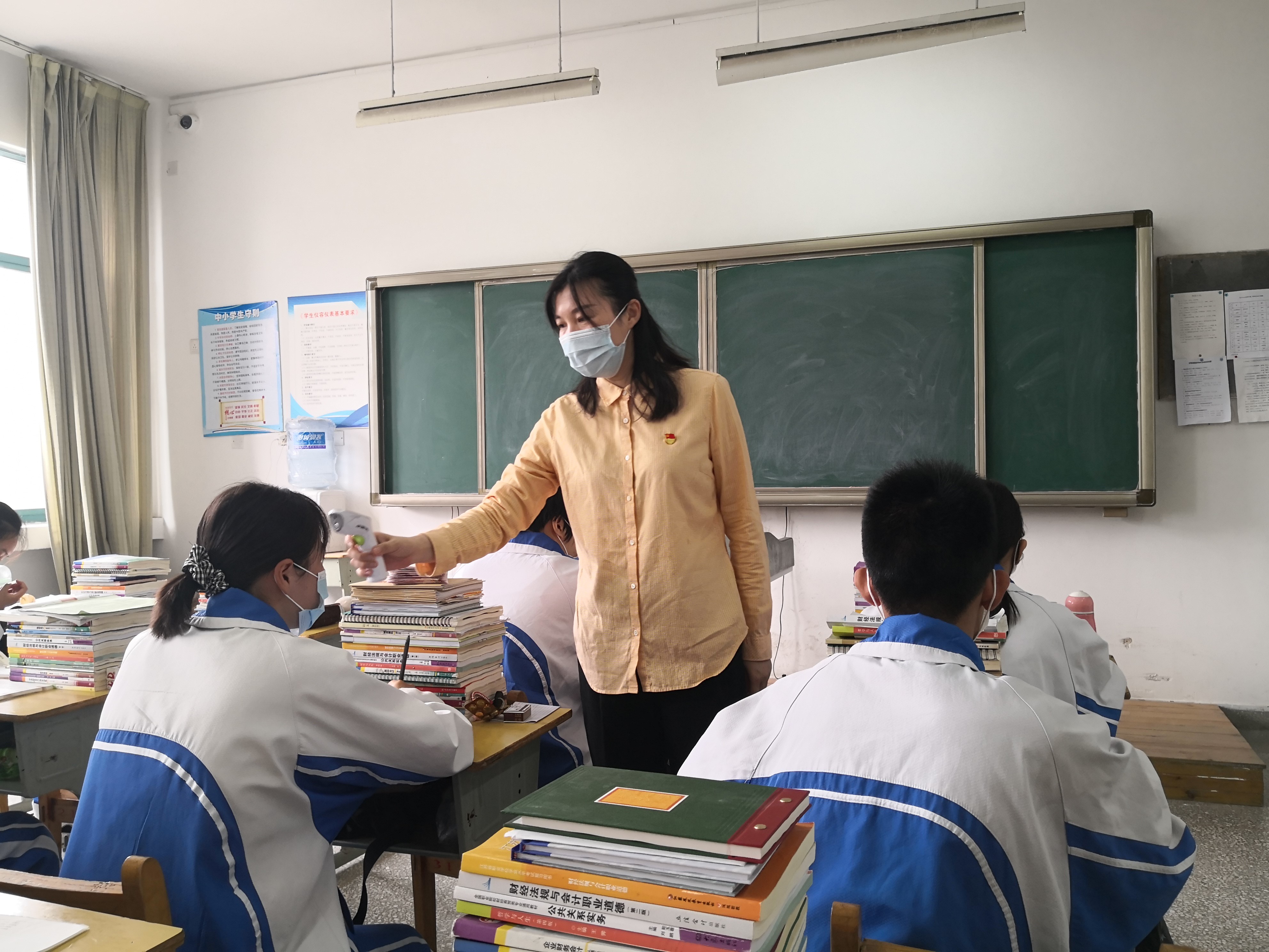 米间隔,做到不落一人,准确登记学生体温。