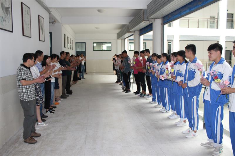 公共教学部中职校区学生代表统一着装,集队来到走廊,为悉心教育无私付出的老师送上衷心的祝福。一句“老师,您辛苦了!”是公教部中职校区学生们对老师辛勤哺育之情的感激。
