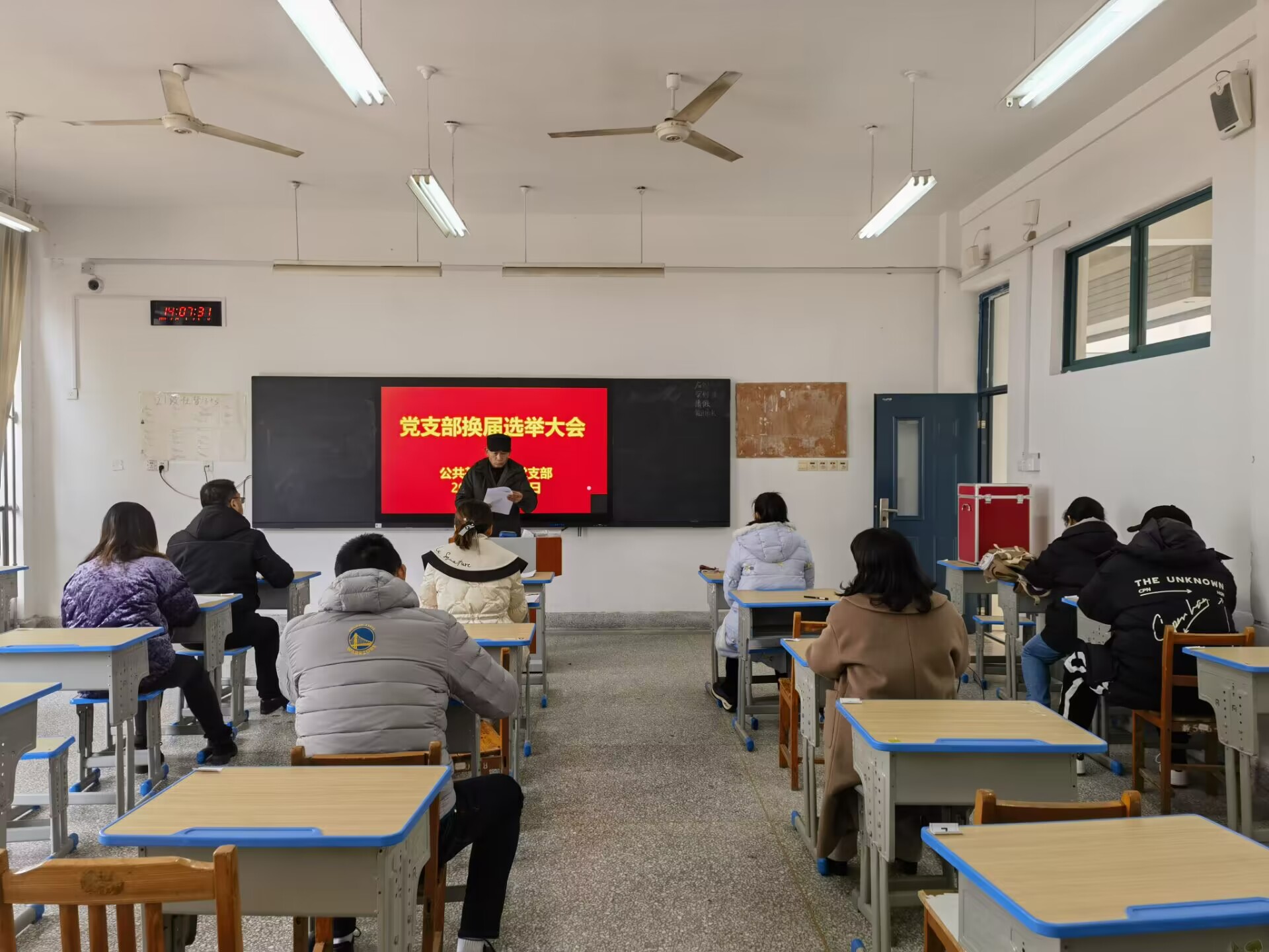 2023年2月24日下午公共基础学院学院党支部换届选举会议在托龙山校区教学楼204顺利召开,大会由公共基础学院党支部书记曹元峰主持,支部12名党员全员参会,校组织人事处张雅媛全程参会。