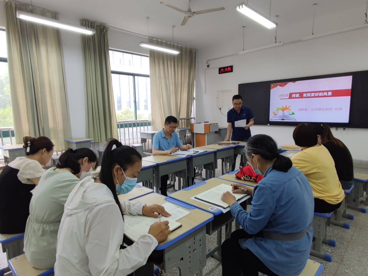 每本书,都凝聚着人类的智慧,承载着文明的成果,传递着文化的薪火。习近平总书记说:“读书可以让人保持思想活力,让人得到智慧启发,让人滋养浩然之气。”阅读,是国民不可或缺的精神食粮,涵养一个民族的精神境界。中国特色社会主义进入新时代,全国人民奋进新征程,为促进支部党员同志读原著学原文悟原理,深刻领悟马克思主义基本原理,感悟习近平新时代中国特色社会主义思想,掌握和运用习近平新时代中国特色社会主义思想开创教育事业新局面,公共基础学院党支部于6月16日在204教室举行了“奋进新征程 阅读再出发”主题党日活动,会议由支部书记陈建辉主持,公共基础学院党支部全体党员参加。