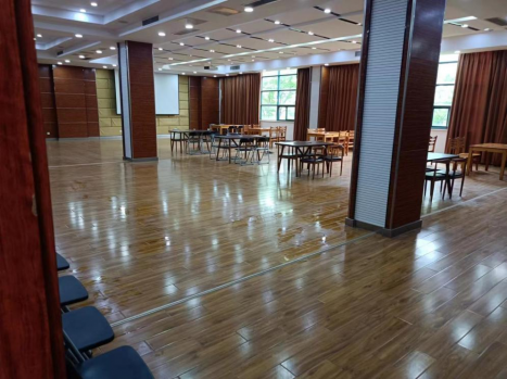 为保障乒乓球比赛顺利进行,后勤管理处投入大量人力、物力,积极准备,赛前认真打扫活动室内外卫生、修缮玻璃门锁、安装乒乓球围挡、校平乒乓球台;根据我校承办单位工会的要求配备长条椅、餐椅、折叠椅、学生方凳共100余个、配备长条桌、课桌、方桌、餐桌等四种用桌、后勤全体人员参与运送摆放桌椅;配备饮水机、饮用水,食堂为参赛者精心准备午餐、做好用餐服务工作,全力保障了比赛的成功举办。
