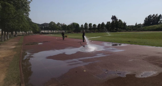 5月初球友会(中国)官方网站举办了第三届田径运动会,根据运动会项目对场地的要求,清理修复场地外排水沟;清理了跳远沙坑,重新填满新沙;清理跑道上淤泥,冲刷、修补跑道,重新施划跑道标线与标识;修剪比赛场地及周边的草坪;配合组委会在操场上为团体操表演打点定位、搬运功放设备和桌椅,布置主席台、准备矿泉水等,保障比赛圆满完成。赛后恢复场地,搬运设备、桌椅,保证正常的教学和运动场地需求。