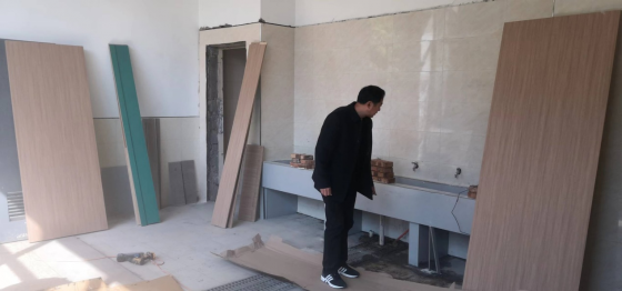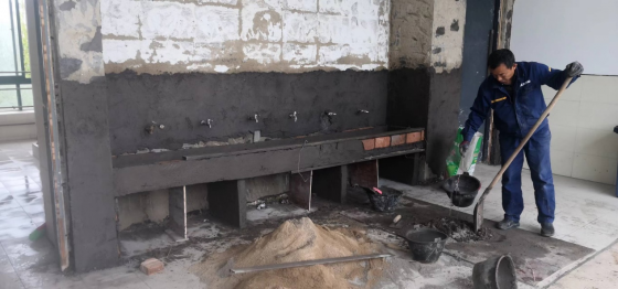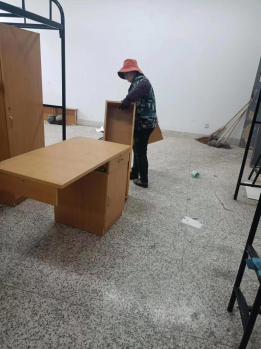食堂楼三楼学生宿舍区功能调整,由宿舍区改为办公区,后勤管理处根据办公区要求,做好改造方案,自4月中旬起进场施工,先后清理宿舍内床、柜等物品,铲墙皮、刮腻子、打磨、喷乳胶漆、更换房门、重布电线等工序,5月底已基本完成。