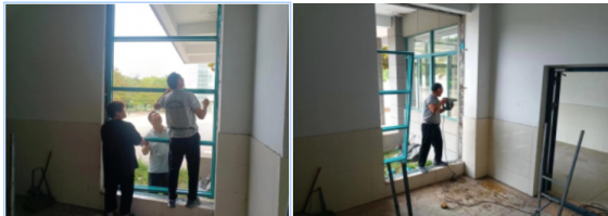 (九)拖龙山校区:教学楼西侧楼梯间外墙玻璃损坏严重,框架锈蚀不堪亟需更换,存在安全隐患并影响美观,暑假期间进行了全部更换。