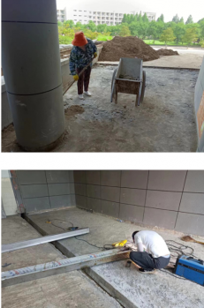 报告厅二楼每次雨后就会从楼栋之间的缝隙中漏水,花坛下面漏水,经过研究讨论决定进行防水改造,在楼栋之间的缝隙处重新定做不锈钢槽,两侧打防水胶,铺设和涂刷防水材料,恢复地面;花坛内铺设涂刷防水材料,经过施工改造彻底解决了多年来漏水问题。