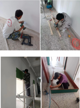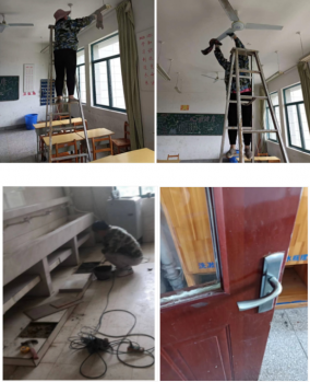 根据教育局督导组反馈要求,后勤管理处对需改进的工作查找原因,制定措施,责任到人,限期整改。后勤管理处安排师傅将教学楼全部共70间教室的风扇和日光灯上积尘进行全面的清理,错开学生在教室上课时间,利用学生上实训课和课余的时间进行清理。对涉及到学生宿舍楼内墙砖、地砖和房门进行了专项检修和更换。