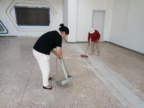 暑假期间,紧抓维修黄金期,冒酷暑、战高温、守岗位,扎实做好各项维修改造、设备检修、水电设施改造工作,对校园的大理石路面予以维修维护,拆除了浴室内部吊顶;清掏化粪池,清洗排水管道。