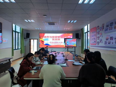 为全面贯彻党的二十大精神,夯实主体教育成果,康养与家政管理学院党支部于11月22日召开全体党员大会,传达关于迎接主题教育办公专项评估的会议精神及要求,会议由傅暄棋同志主持。