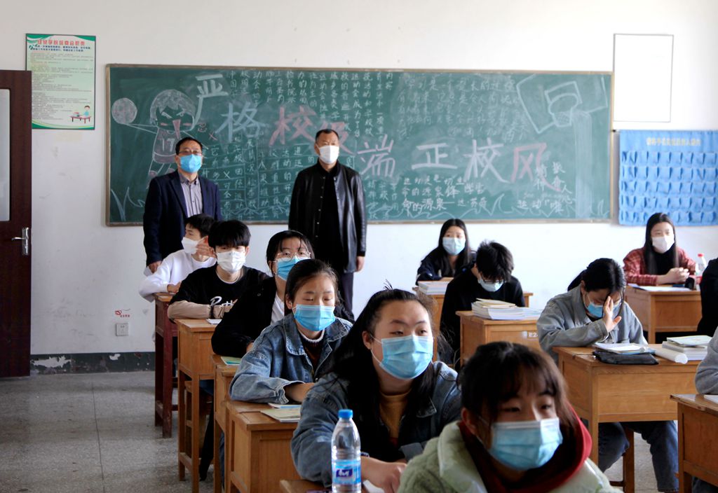 清晨8:30,校领导带领各部门负责同志分赴中职、高职校区,检查和督促校园疫情防控工作的落实情况;走进教室,深入一线了解教师授课和学生健康出勤情况。