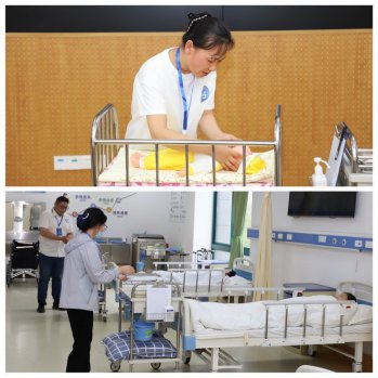 为深入贯彻落实党的二十大关于家政服务和健康照护工作的重要精神,加强家政服务和健康照护人才队伍建设,8月26日至27日,由徐州市人力资源和社会保障局主办,我校承办的2023年徐州市彭城工匠家政服务员(整理收纳师)、健康照护师职业技能竞赛在拖龙山校区成功举行,徐州市人力资源和社会保障局纪委书记但昭军、徐州市人力资源和社会保障局职建处处长杜婕、徐州市技能人才评价管理中心主任陈都标、徐州市技能人才评价管理中心副主任何大军巡视赛场指导比赛。我校党委书记、校长石月荣,副校长杨平现场看望、慰问比赛选手和工作人员。