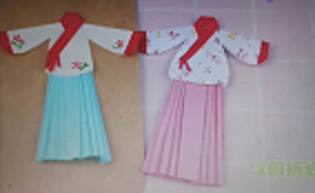 2.学生用纸、笔设计出一款自己喜欢的汉服或手工折叠汉服。(8分钟)