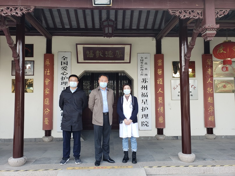 胡钊涵一行深入苏州泰康之家—吴园、苏州福星养老集团等养老机构;石映红一行前往南京点将台社会福利总院、南京福康通健康产业有限公司及无锡光大今夕延年养老运营管理公司。调研小组分别与涉老企业有关领导进行座谈,实地考察了学生实习就业的工作、住宿、就餐环境,了解了当前先进的康养技术和适老化领域的前沿成果,深入探讨了联合培养新时代康养专业人才的有关事宜,为学生提供高质量实习就业岗位开辟了一条绿色通道。
