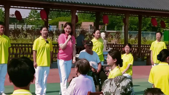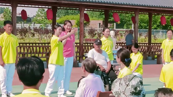 在幸福园工作人员的指导下,学生志愿者们主动与老人聊天谈心。随后志愿者们为爷爷奶奶表演了精彩的节目,还专门学习了保健知识与康复操一起教给爷爷奶奶
