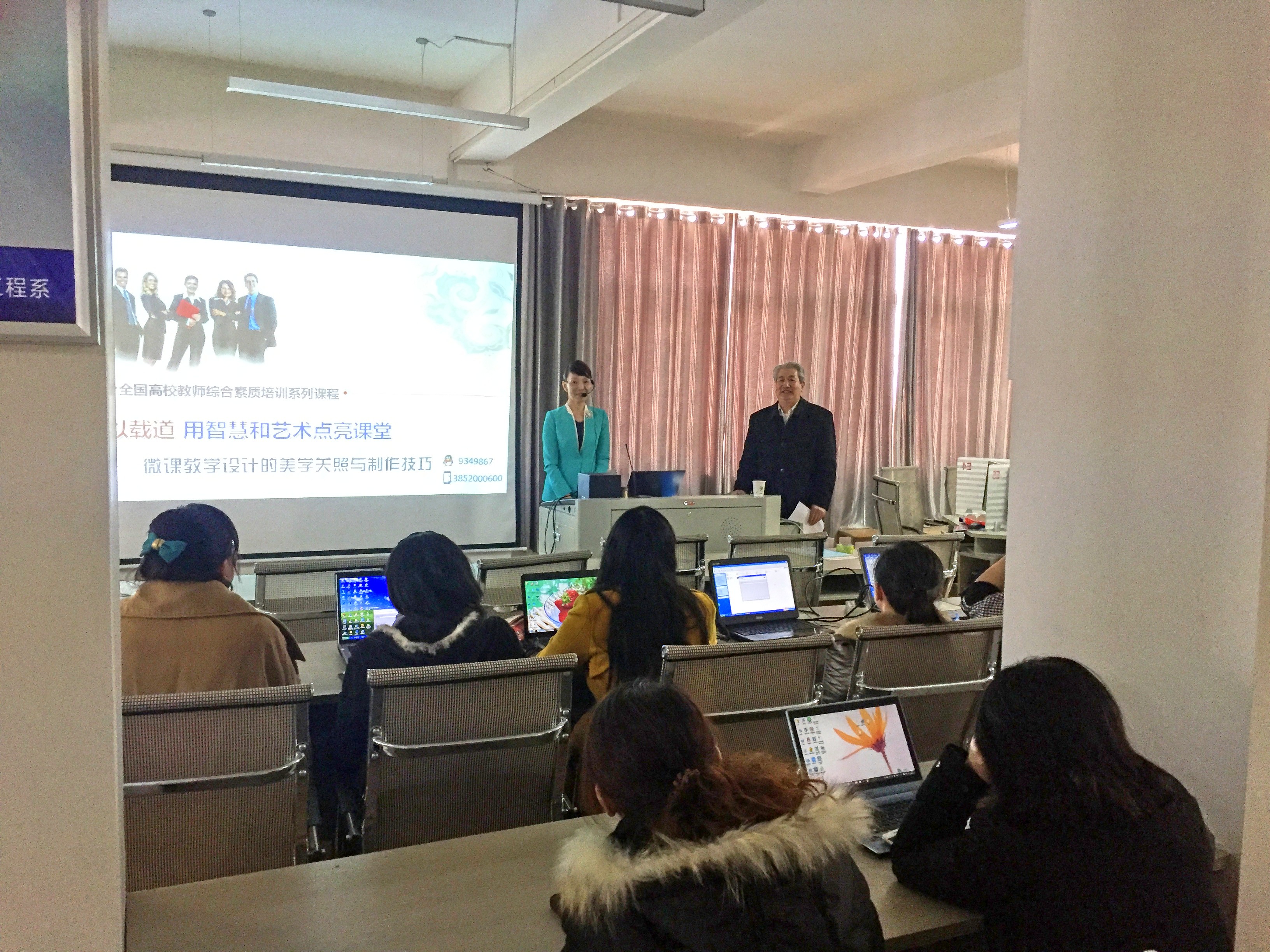 赵岩老师在研究“应用现代教育技术实现课堂教学的艺术表达”方面有着独到见解。此次讲座,赵老师以信息时代教师的机遇与挑战为出发点,提出“微”时代教师信息化素养提高的必要性,结合案例论述了微课的开发流程、开发方式、常用开发工具等,强调微课设计的艺术之美。与会教师被清雅的音乐、情景交融的PPT画面,生动形象的讲解深深折服,会后,赵老师与参会老师就当前高职教育中出现的一些热点问题也进行了深入的交流。
