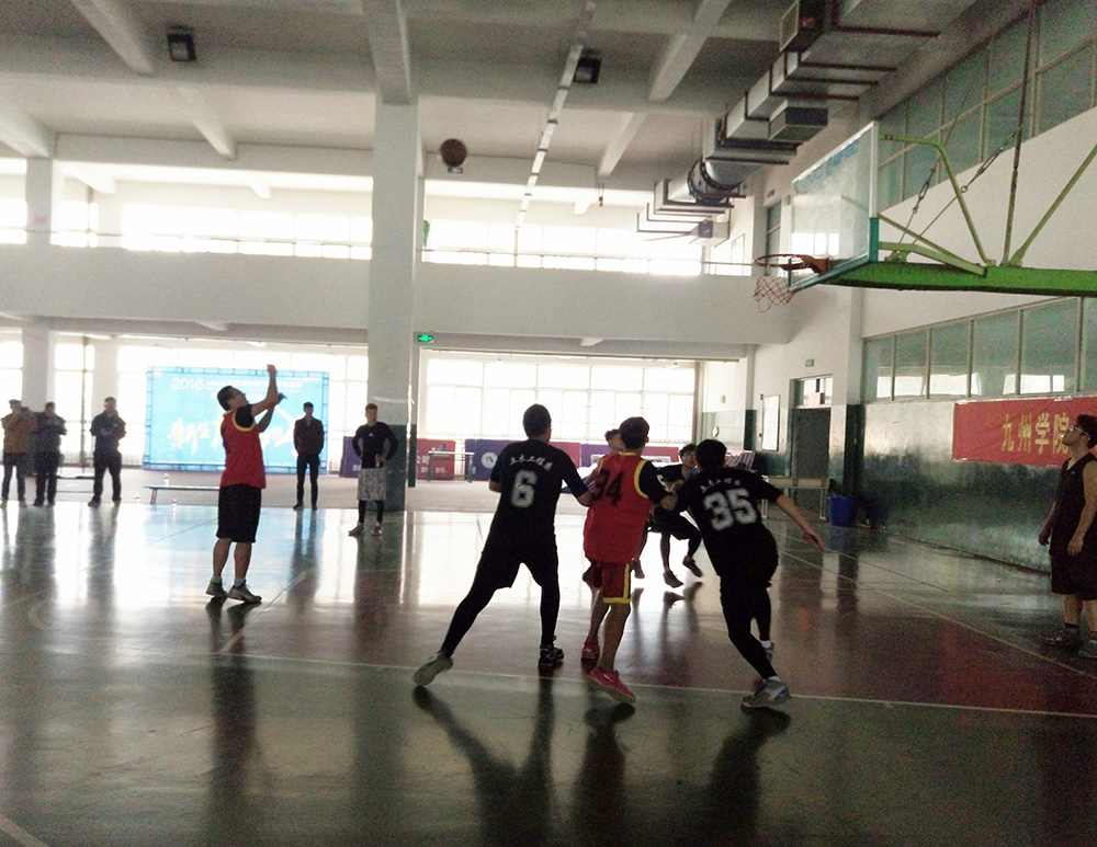 比赛打得激动人心、精彩非凡!九州学院的男篮队实力不可小视,他们的队员凭借其较快的速度和抢断,较好的跳跃能力抢夺了较多的篮板。但是我院球员凭借较为默契的配合,一会儿一个盖帽,一会儿一个快攻,比分交替上升,僵持不下。此起彼伏的助威声回荡在球场上。双方的每一个进球,每一次出色的防守与进攻,都引发出全场快乐的掌声和笑声,比赛异常激烈而又充满友谊、和谐的气氛。随着裁判最后哨声的响起,比分停止在了40:39,我院篮球队以1分的微弱劣势输掉了本场比赛。