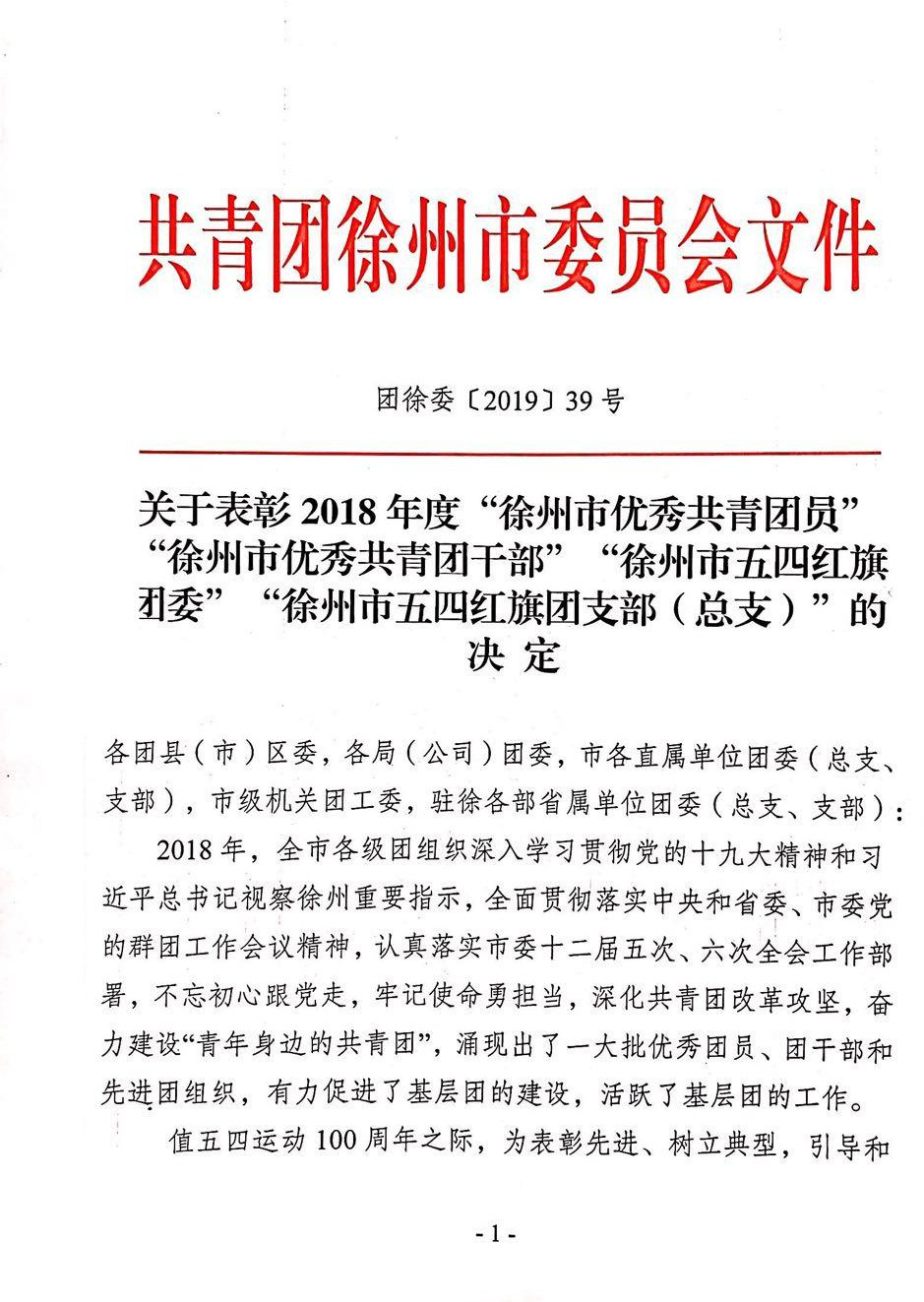 徐州开放大学建筑工程与艺术设计学院团总支书记李思锦同学荣获2018年度“徐州市优秀共青团干部”