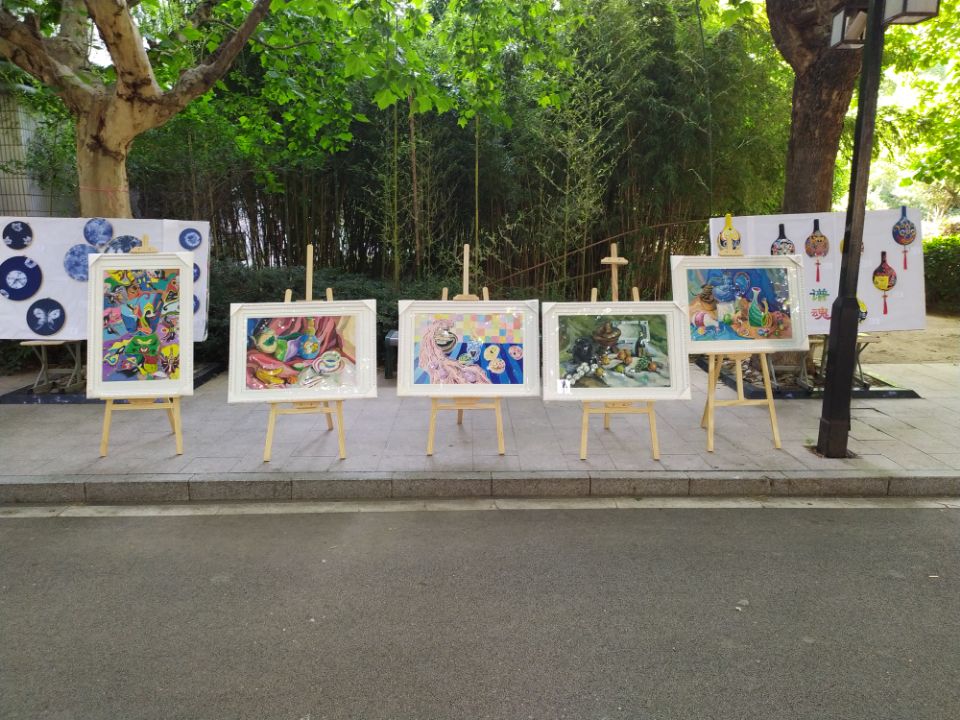 6月11日在江苏城市职业学院(徐州)南校区的校园林荫道旁,建筑与艺术设计学院举办了“2019视觉传播专业学生作品展”。展出利用黑板、课桌等将几乎没有任何装裱的学生作品做了原生态展出,本次参展的主要是视觉传播专业19中高职对接班的学生作品。