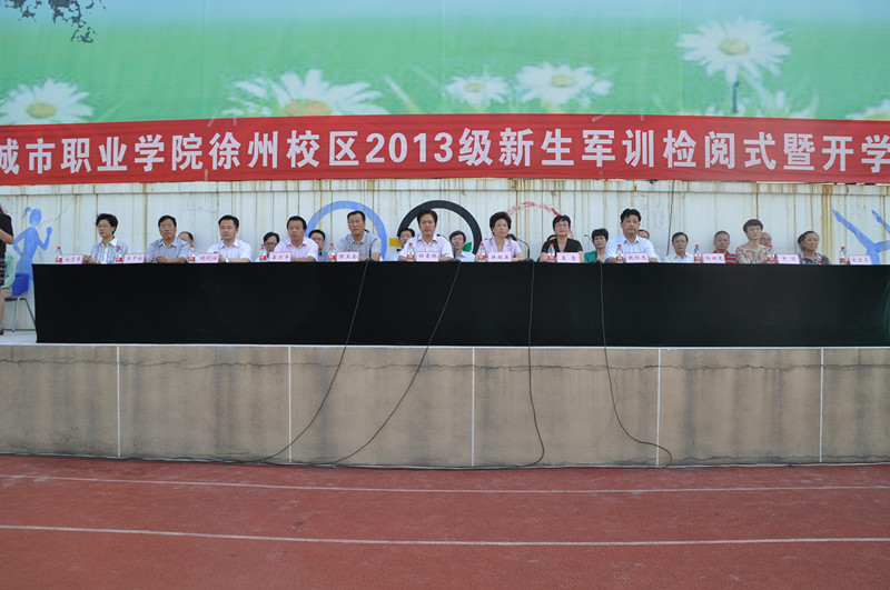 9月18日下午,我校2013级新生军训检阅式暨开学典礼在南校区运动场隆重举行。校党委书记杜吉林阅兵,校长韩超英讲话。副校长陈玉金、袁惠,校长助理姜万平、魏红光,各部门、各系部主要负责人,军训教官,2013级新生及部分没有课的老生参加了仪式。副校长陈玉金、校团委副书记孔扬分别主持开学典礼和军训检阅式。