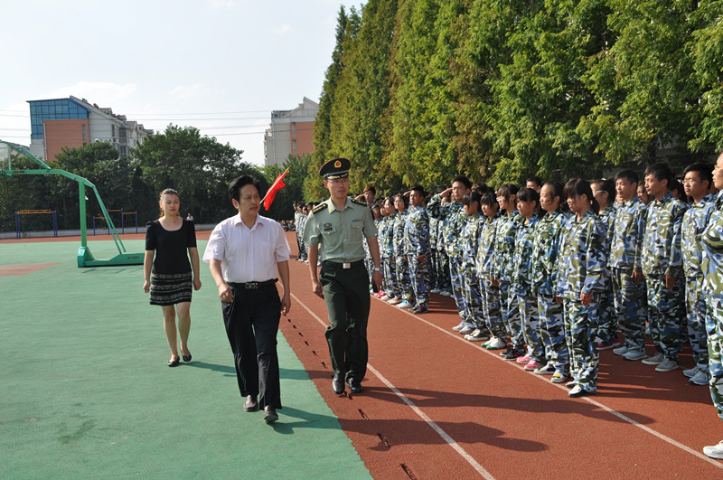 杜吉林书记在团委副书记孔扬和承训部队连队指导员贾广卫的陪同下检阅了13级新生受训班级。“同学们好!”“同学们辛苦了!”——“为人民服务!”。杜书记的亲切问候和受阅方队的响亮回答,响彻云天。响亮的口号,雄壮的队伍,庄严的敬礼,展示了我校学生良好的精神风貌。