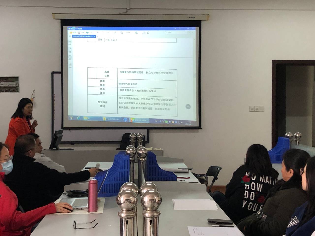 2021年4月23日下午,经贸学院在多媒体316会计实验室举行了课程思政教学研讨会。