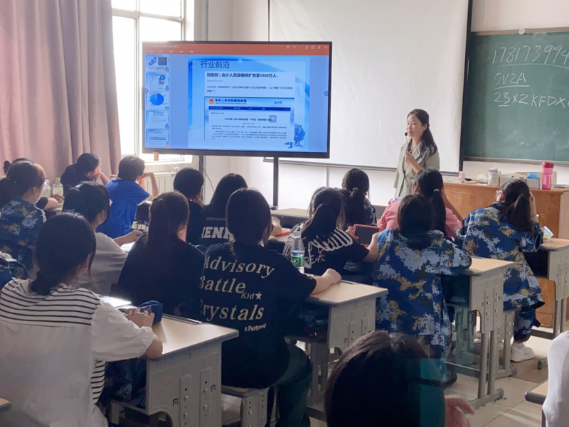 副教授时娜、副教授孙建萍分别在教学楼101、507教室为23级大数据与会计五年制高职班详细介绍了学院概况、大数据与会计专业课程设置以及就业前景。