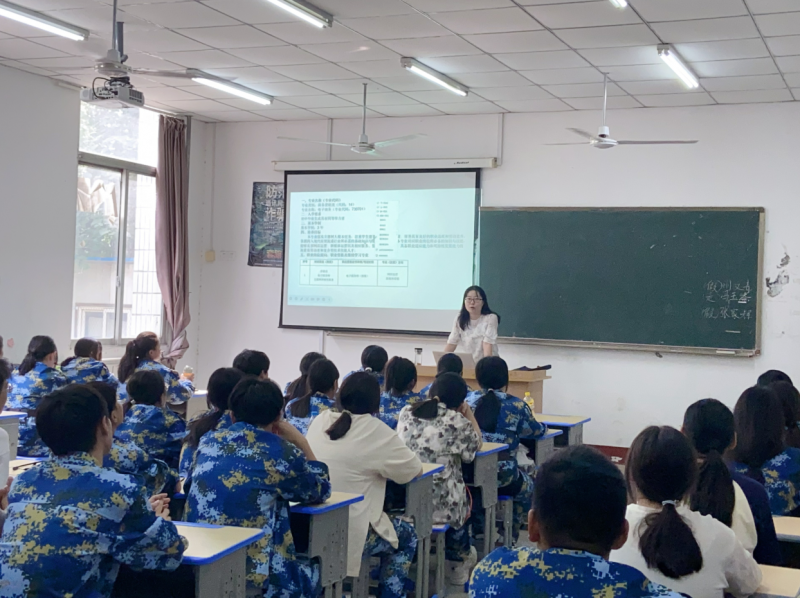 青年骨干教师吴倩倩在教学楼111教室为23级电子商务中职班介绍了电子商务专业的培养方向、专业课程设置、技能要求以及就业前景。