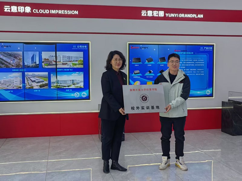 在江苏普迈思医疗科技有限公司,校企双方共同为 "徐州开放大球友会(中国)官方网站经贸学院校外实训基地" 揭牌。杨平副校长与普迈思医疗科技有限公司总监黄峰共同见证了校企合作协议签约仪式。