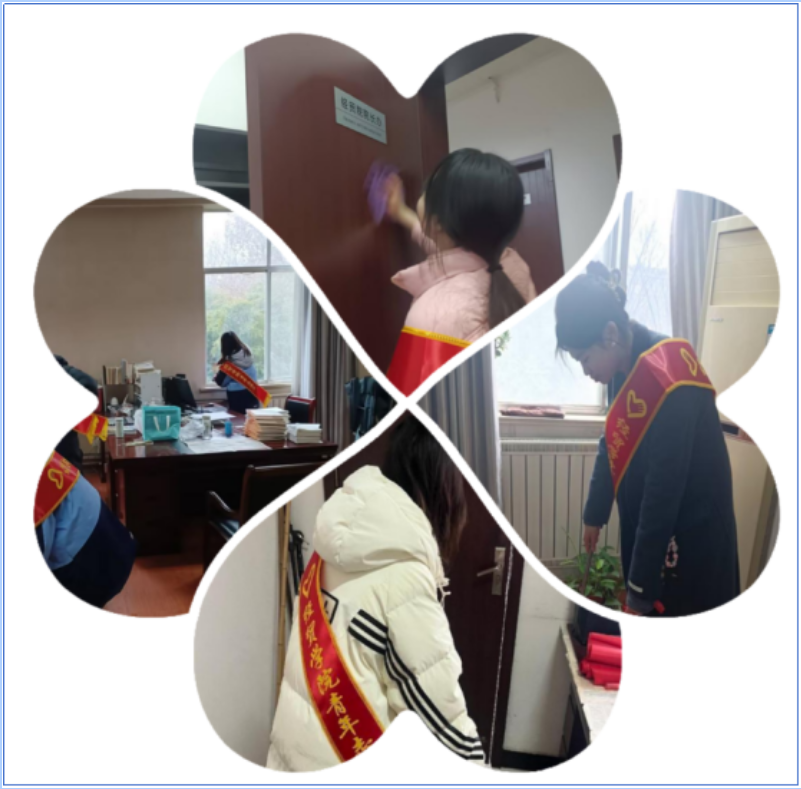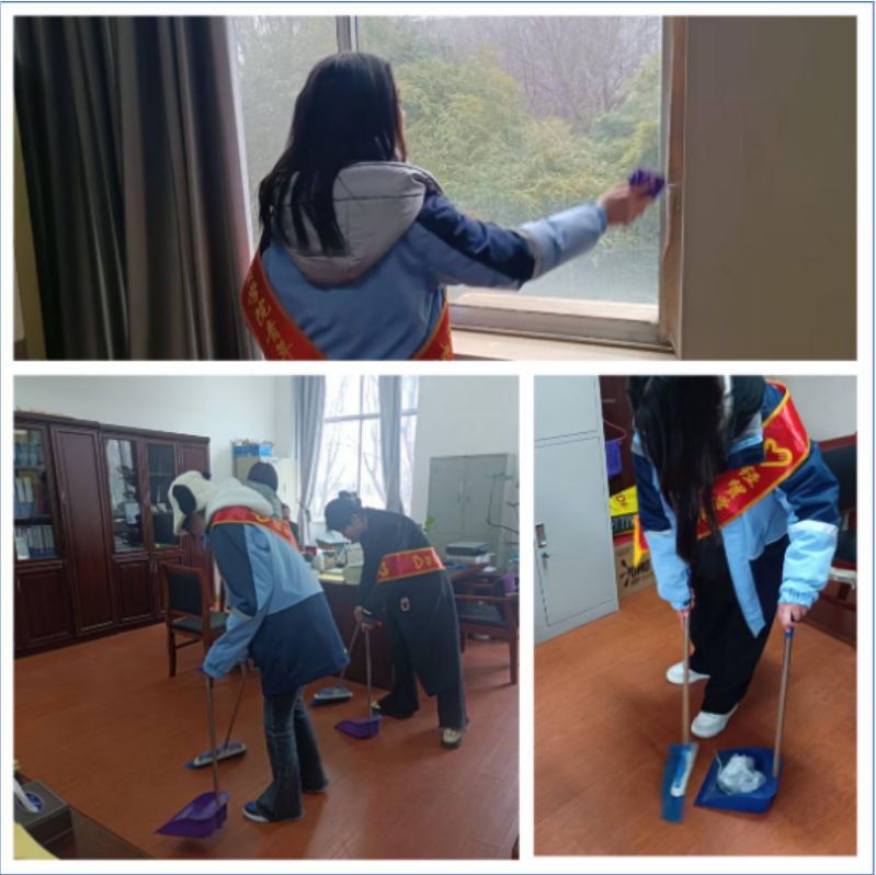 随后,志愿者们马不停蹄地奔赴学院办公楼,将服务的热情带到了经贸学院老师的办公室。在这里,大家分工明确、配合默契。一部分同学负责擦拭桌椅门窗,手中的抹布在玻璃与桌椅上快速移动,不一会儿,玻璃变得明亮通透,桌椅也干净如新;另一部分同学则专注于清扫地面垃圾,扫帚所到之处,灰尘与垃圾纷纷归位。一个多小时的时间里,办公室内一片忙碌景象,大家忙得不亦乐乎。随着最后一处卫生死角被清理干净,办公室环境彻底大变样,变得干净整洁、温馨舒适,为老师们营造了一个更加宜人的办公环境。