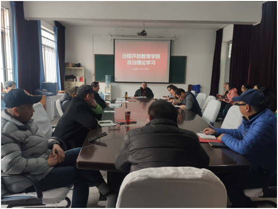 11月29日下午2:30,远程开放教育学院召开全体人员会议,进行期末工作布置和政治理论集中学习。
