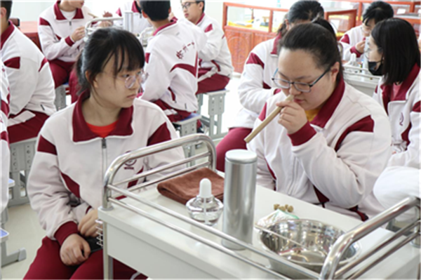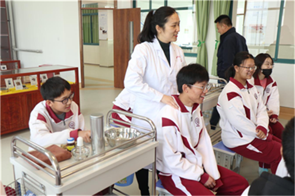 课程开始前,健康与养老教育学院院长王晓斐带领一中的老师和学生们共同参观了我校健康与养老教育学院实训楼,包括护理实训室、社区康复实训室、综合康复实训室、营养膳食实训室、智能养老家居实训室、心理健康实训室、茶艺室、职业规划室、理实一体室等。学生们对实训设备产生了浓厚的兴趣,纷纷拿出手机拍照,眼神中充满了欣喜与好奇。