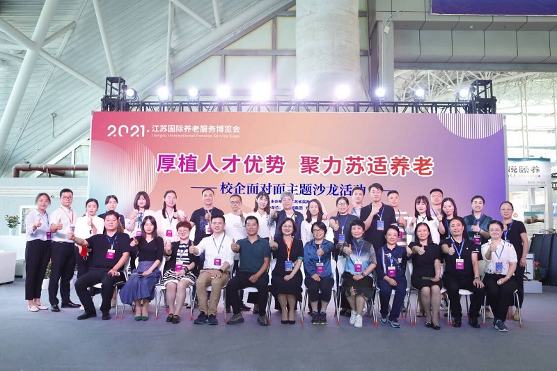 我校受邀参展人才专场。南京中医药大学、江苏经贸职业技术学院、徐州开放大学、九如城集团、朗诗常青藤等近20家单位参展。主办方组织了“厚植人才优势,聚力苏适养老”为主题的“校企面对面”主题沙龙活动。校企单位代表集聚一堂,共同探讨“家庭养老床位”服务新模式对养老服务人才知识能力结构的新需求新思考新实践。我校康养与家政管理学院副院长石映红特邀发言。她分享的主题是 “养老新时代下,强化老服人才四化素质提升,打造老服从业人员职业新形象”,阐明学科交叉,知识融合,技术集成是养老行业的新时代特征,培养院校应深化“1+x+”人才培养模式改革,与企业深度产教融合,培养专业化、职业化、人性化、现代化的复合型老服人才,从而实现老服人才培养专业的职业化及养老服务职业的专业化。石院长的发言理论与实践紧密结合,与会代表深受启发,交口称赞徐州开放大学不愧为较早研究养老人才培养,在业界有一定影响力的院校。此外石院长接受媒体采访,介绍我校康养人才培养理念、相关专业发展及在康养人才培养方面取得的成果,并与朗诗常青藤、银城等养老机构建立联系,进一步拓展校企合作实习基地。