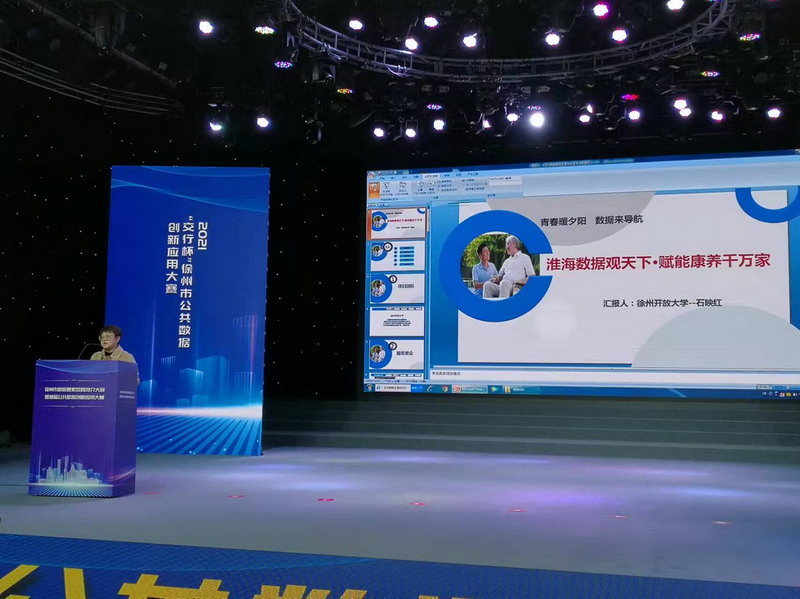 2021“交行杯”徐州市公共数据创新应用大赛决赛于12月24日在徐州电视台演播大厅举行,副校长魏红光应邀出席活动。我校参赛作品《淮海数据观天下·助推康养千万家》荣获二等奖。