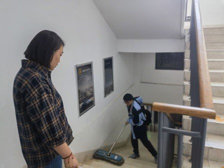 为此,汽车学院特别重视每周一的劳动课教育。劳动课中,我院班主任王玉荣、陈星凯、曹颖、刘影、孙健翔、吴頔、陈静、吴志伟、张刘乐、王士龙、郑蒸、孟宪洁、王聪等老师亲自到卫生区指导学生打扫卫生。每次劳动课后,纵老师和周老师都会认真检查实训室打扫情况并反馈。