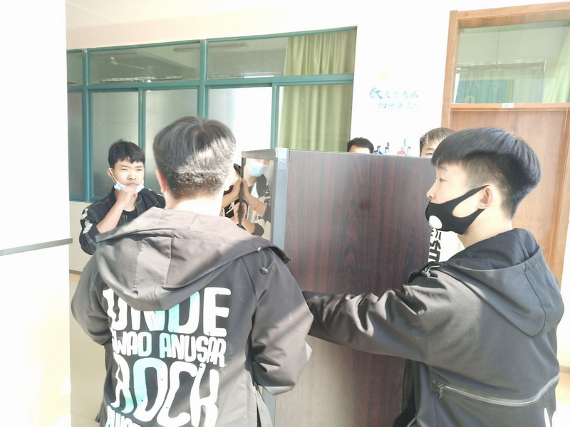哪里有困难就向哪里冲!一声令下,在汽车学院团总支程阳同学的带领下,以汽修18(4)班学生干部为主,迅速组织了10人志愿者队伍,利用课间休息时间赶到现场,迅速投入了搬迁工作。