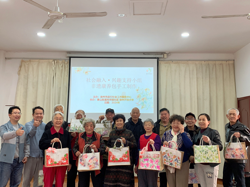讲座结束后,校级社团的志愿者们带领老人制作手工包,制作完成后赠送给老人。本次活动不仅让老人们学到了冬季养生的知识,还通过手工制作活动丰富了精神生活。