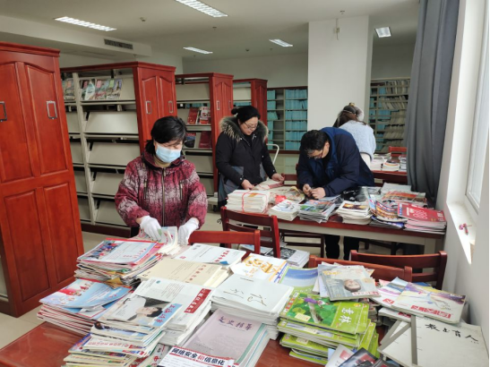 及时上架最新期刊,加强过刊规范化管理,确保过的连续性和完整性,221日至2月23日期间,我馆俞馆长的带领下2021年征订的163期刊共计2500余册进行分类和合刊整理通过合刊整理后再进行装订成本编入馆藏书库,有效节省了馆内杂志存放的空间,装订好的杂志将整齐排列在过刊书架上,为读者的多样化阅读提供了很大便利。