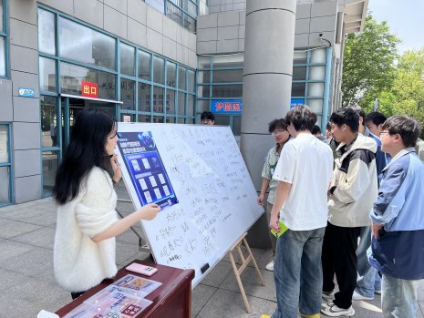 高凌凤老师则详细介绍了本年度读书节的系列征集项目,包括主题征文、摄影书画大赛以及短视频创作等,并结合去年优秀作品进行现场展示与讲解,激发同学们的参与热情与创作灵感。周文、王晴老师在活动现场组织师生读者参与“心愿书单”填写和扫码关注等互动环节,并为参与学生发放宣传纪念礼品,进一步提升了活动的趣味性与参与度。