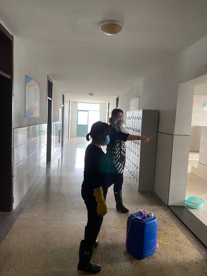 暑期前一天,袁主任带领宿管工作人员进行了宿舍的大扫除,并对宿舍进行了消毒和安全检查,消除安全隐患。