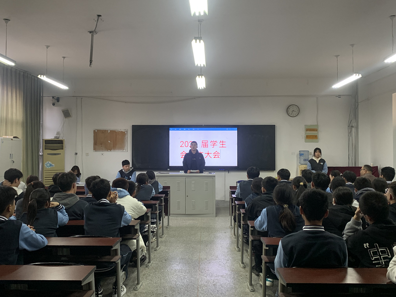 会议伊始,由学生会学生代表发言,介绍学生会各项工作。