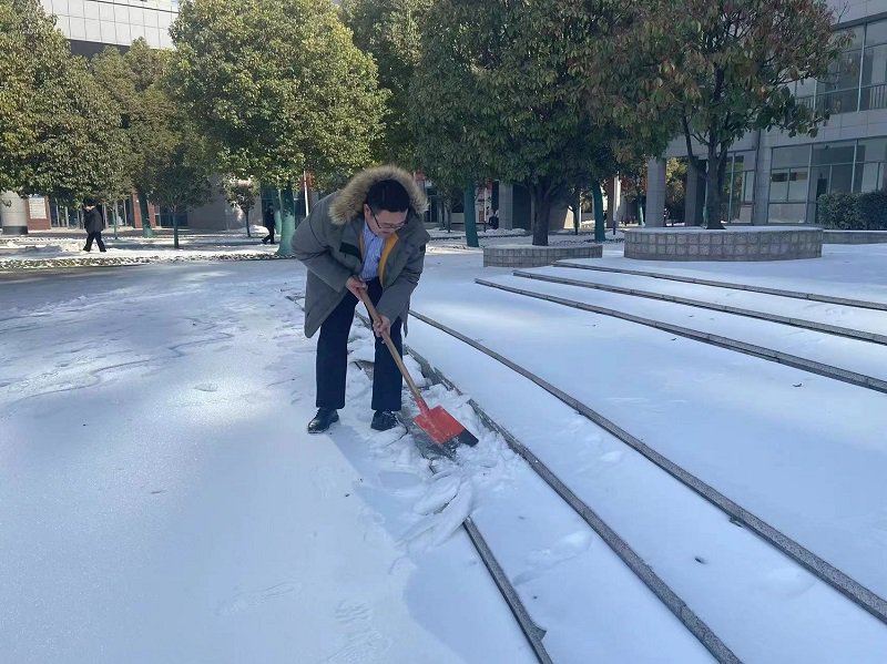我校志愿者义务除雪 确保师生出行安全