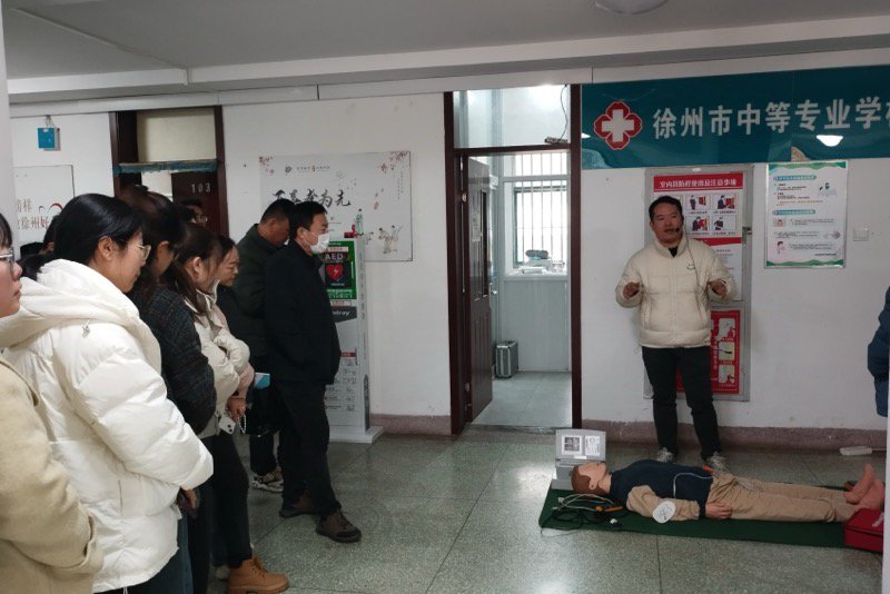 2024124日下午学工处在我校拖龙山校区组织开展2024学年度班主任例行培训暨校园急救技能提升轮训(第一期)本次培训共有60余位师生参加。这是我校在男生宿舍一楼配备自动体外除颤设备(AED)后首次进行此类专业培训,旨在提升全院师生的应急救护知识与技能,增强校园安全保障。本次培训由校医务室薛航医师进行授课,其为美国心脏学会和中国红十字会双认证应急救援培训师资。